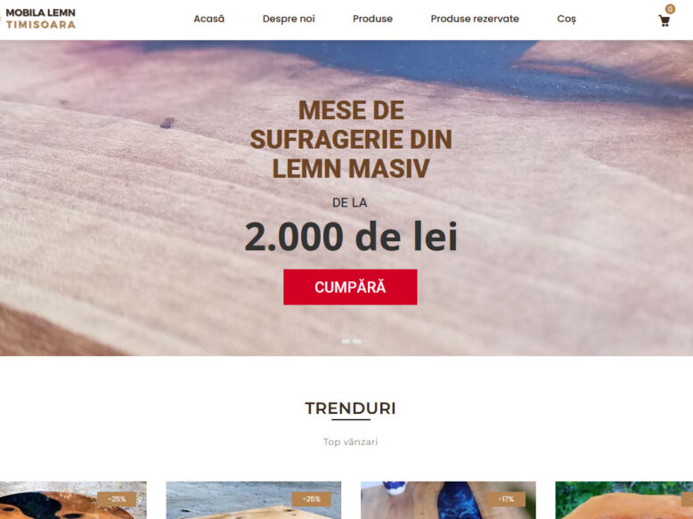 Site de prezentare a unui atelier de mobila din lemn masiv cu adaugare de elemente din epoxy. Elementele dorite de beneficiar au …